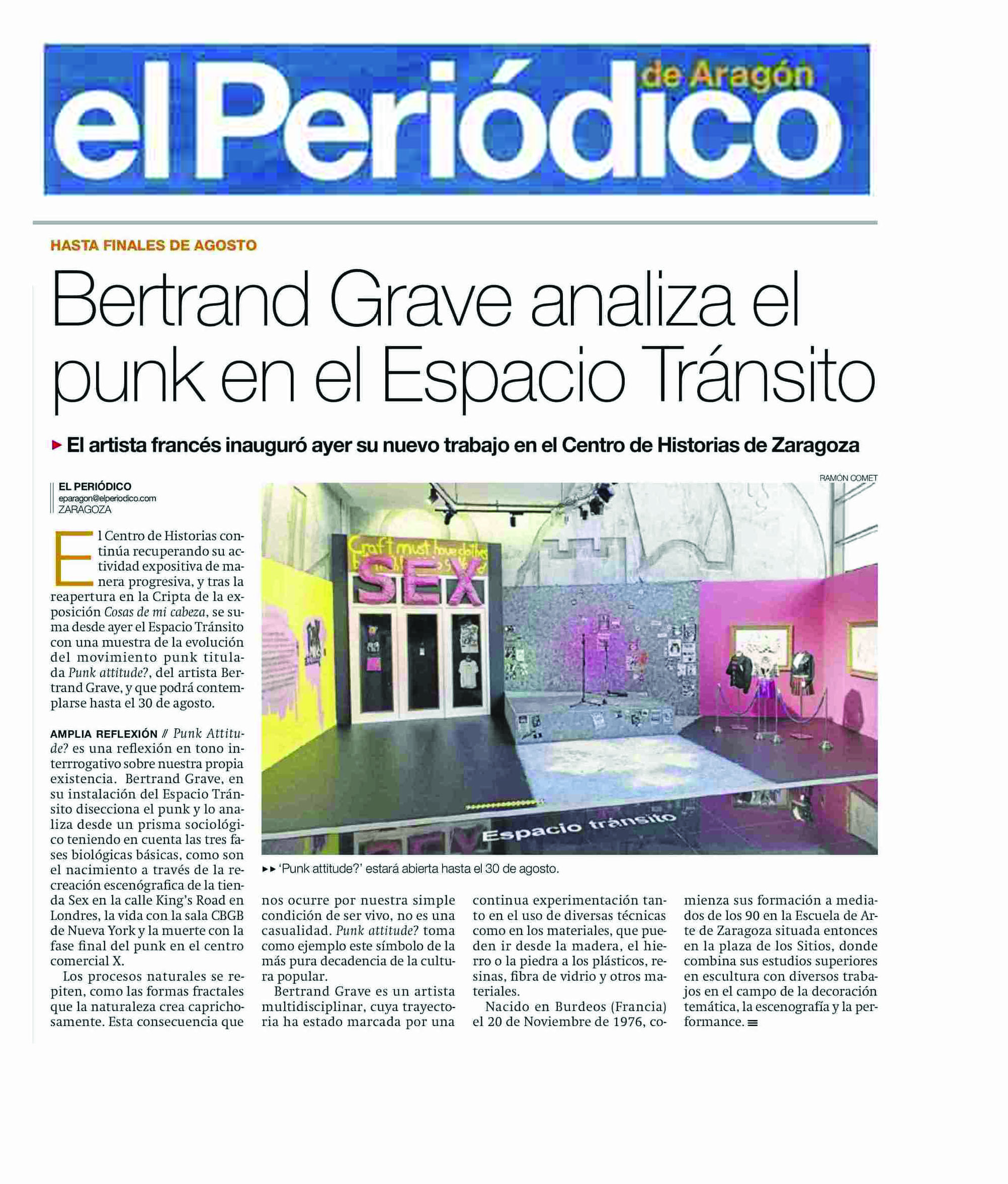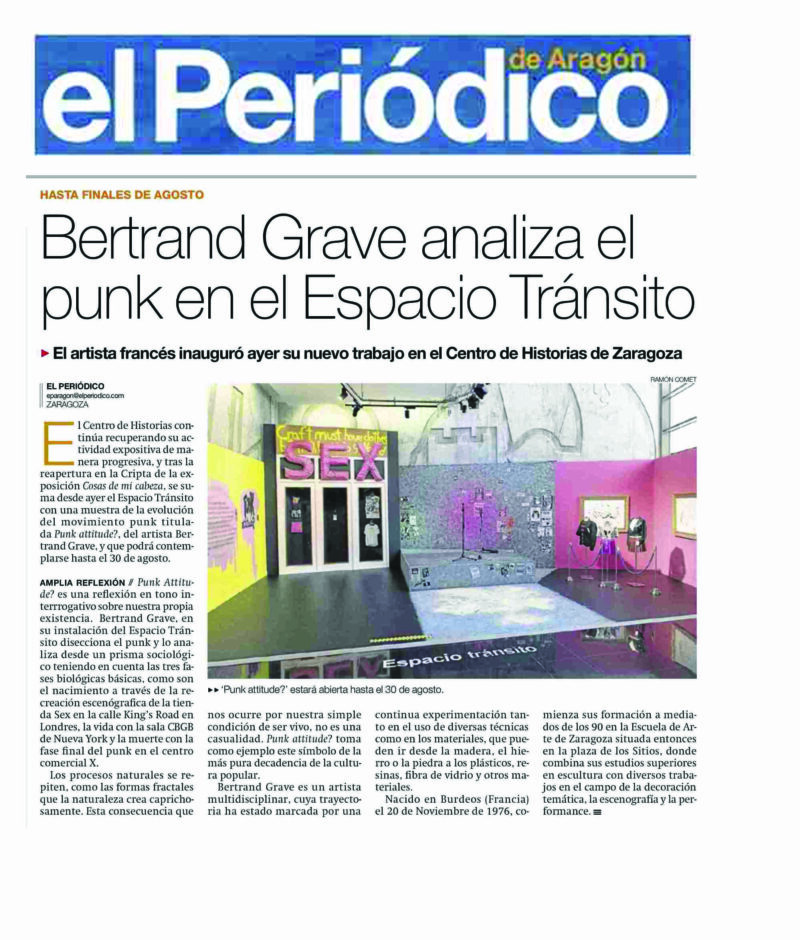 Muchas gracias a el Periódico de Aragón por su artículo. Sinceramente, agradecido de la gran acogida de mi exposición. Punk Attitude? hasta el 30 de Agosto en el Centro de Historias de Zaragoza.